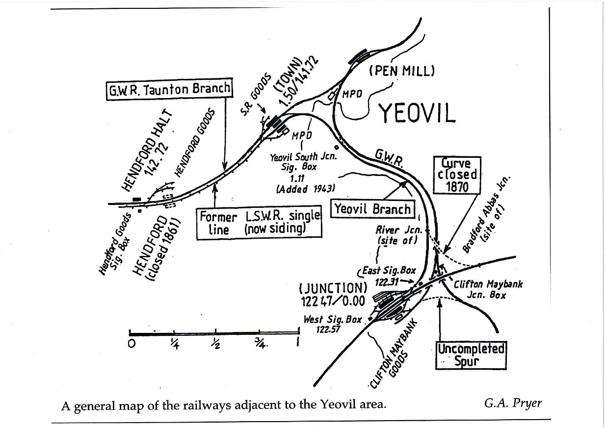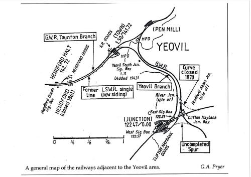 The Broad Gauge Clifton Maybank branch was built by the Great Western Railway in 1864 to enable the transfer of goods to the narrow gauge London and South Western Railway at Yeovil Junction. The line came off the GWR Bristol to Weymouth line at a junction north of the London & South Western Railway London to Exeter Line, and ran under that line to the South of Yeovil Junction. A transfer shed, now the Yeovil Railway Centre Visitor Centre, was built to enable the transfer of goods from Broad to Standard gauge. The GWR started work on the “South Chord” to form a southern facing connection to the Bristol to Weymouth line. But the work stopped in 1866 before any rails had been laid.