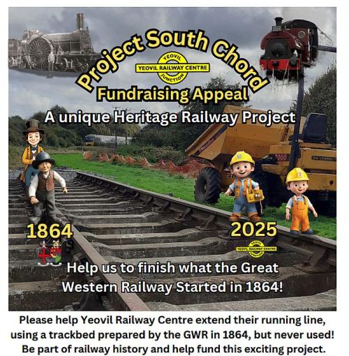 Send a cheque (payable to Yeovil Railway Centre) to South Chord Appeal, Yeovil Railway Centre, Yeovil Junction, Yeovil BA22 9UU