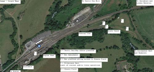 Credit: Google Maps with our added notes. Public trains currently operate from Point A to Point Y. Once the project is complete Public trains will run from Point A to Point X (new platform) with access to the Events Field (Z)