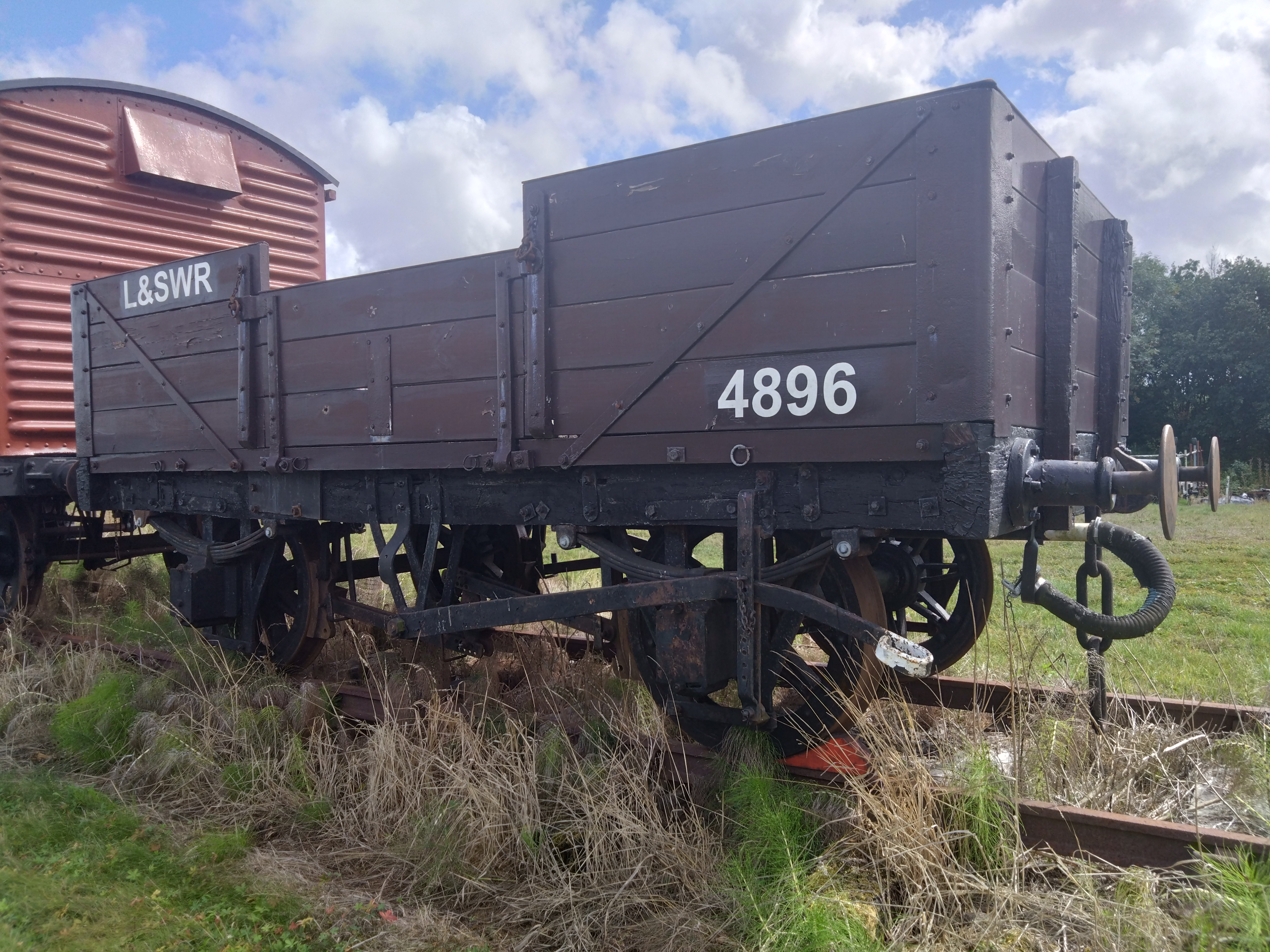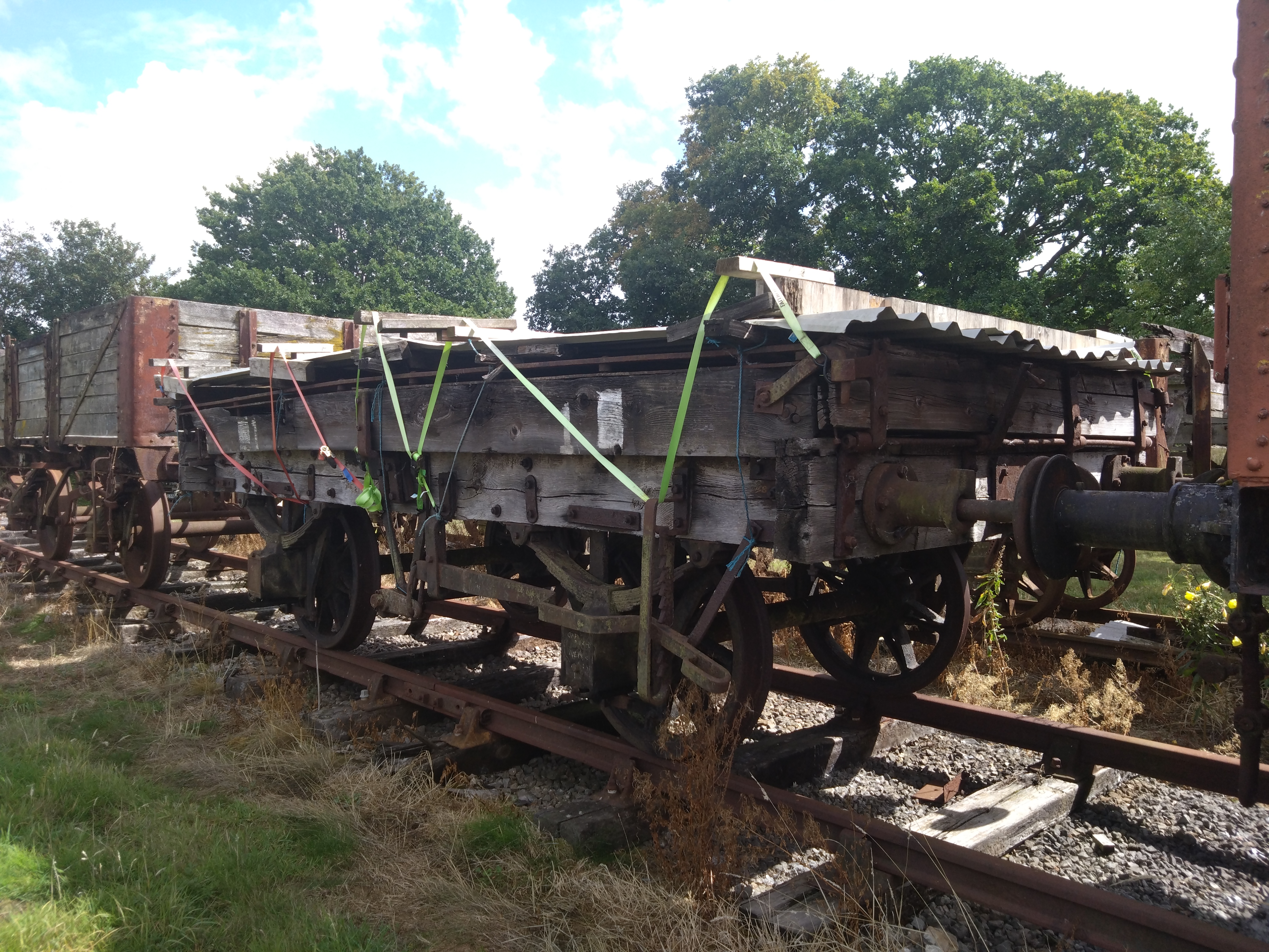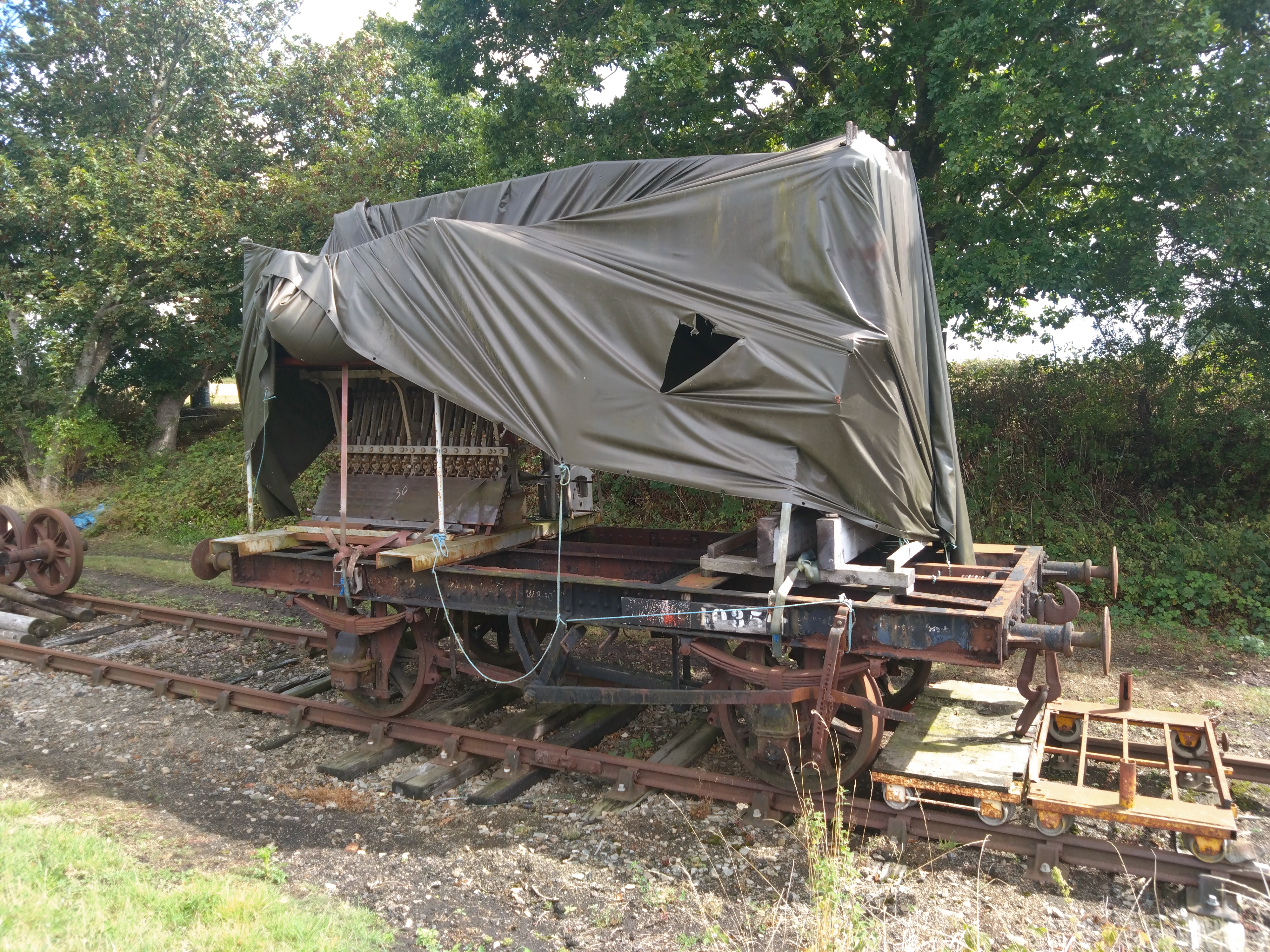 1895 London & South Western Railway Open Carriage truck (5830). Covered to protect frame, in storage.