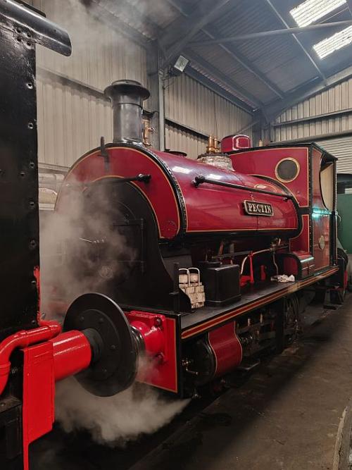 'PECTIN' was built in 1921 (number 1579) by Peckett & Sons Ltd of Bristol at its Atlas Works, having been designed to perform shunting duties on standard gauge factory sidings. Its working life was spent at the British Aluminium Co (BAC), Burntisland, Fife, Scotland. The engine was purchased for £225 on 24 December 1971 and arrived at its new home at Bulmers Cider in Hereford on 2 March 1972. The loco arrived in Yeovil in 1995 having had its third boiler overhaul costing some £15,000.